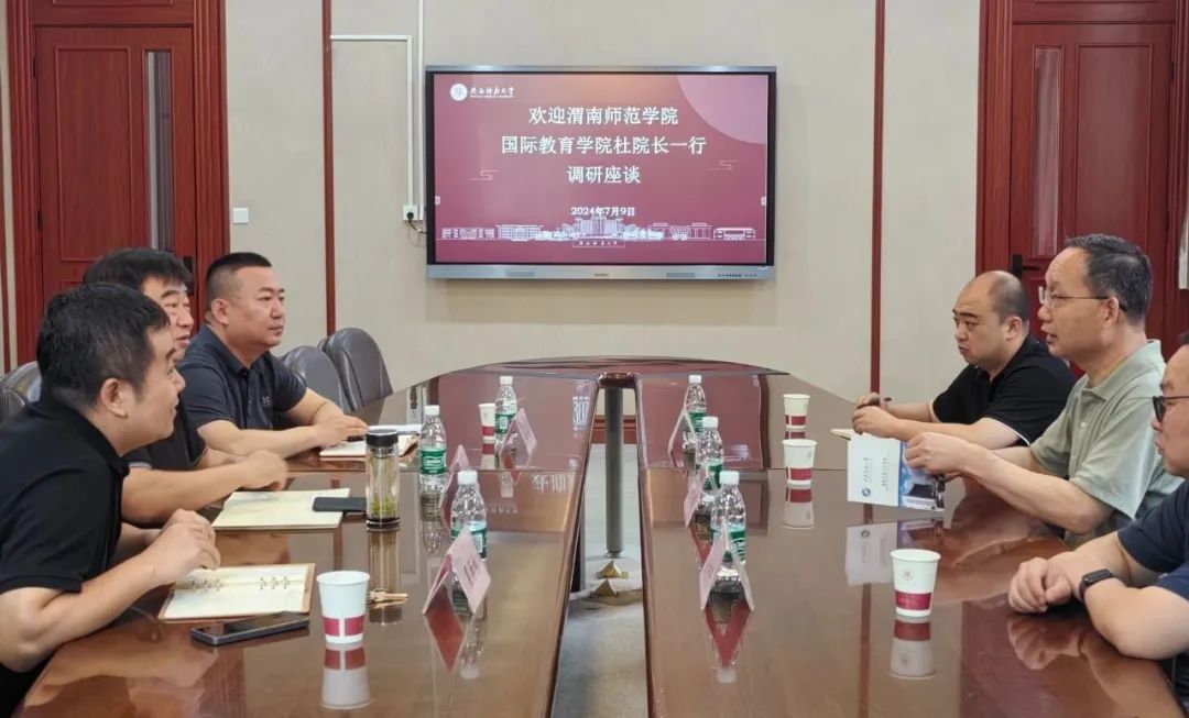 7月9日,渭南师范学院国际教育学院院长杜百顺、副院长王有景、办公室主任张钧涛一行来52av 调研交流。52av 院长石洛祥、副院长贾泽林、办公室主任朱卫强参加座谈,会议由石洛祥院长主持。 杜百顺院长介绍了渭南师范学院国际教育学院的基本情况,并说明了本次调研交流的目的,他希望能够通过此次交流,了解学院留学生招生培养相关情况,借鉴经验,深化交流合作。 石洛祥院长对杜百顺院长一行表示热烈欢迎,并介绍了国际汉语文化...