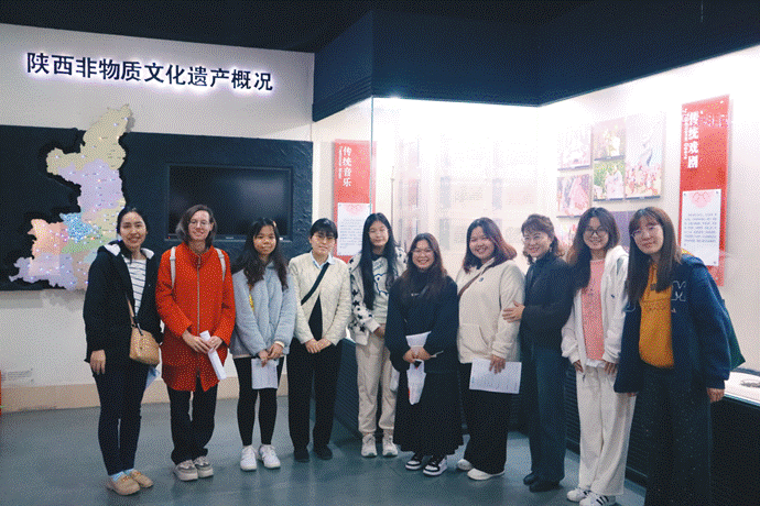 2024年11月12日下午,参加中国非遗文化课程学习的国际学生们踏入了陕西省非物质文化遗产陈列馆,开启了一场沉浸式的文化探索之旅。 陕西省非物质文化遗产陈列馆将陕西省的非遗文化按照十大门类进行布展,包括民间文学、传统音乐、传统舞蹈、传统戏剧、曲艺、传统体育、游艺与杂技、传统美术、传统技艺、传统医药以及民俗。这种分类方法不仅让参观者能够系统地了解非遗文化,还能够感受到每一种文化形式的独特魅力。 在课程教师刘琨老师的带领和讲解下,...