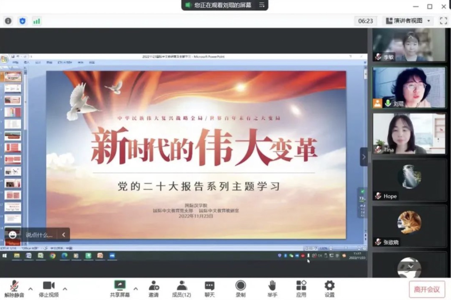 11月23日下午,国际中文教育党支部及教研室举行了以“新时代的伟大变革”为主题的西安上教职工政治理论学习暨国际中文教育党支部十一月理论学习活动,开启了党的二十大报告系列主题集体学习的第二章节。