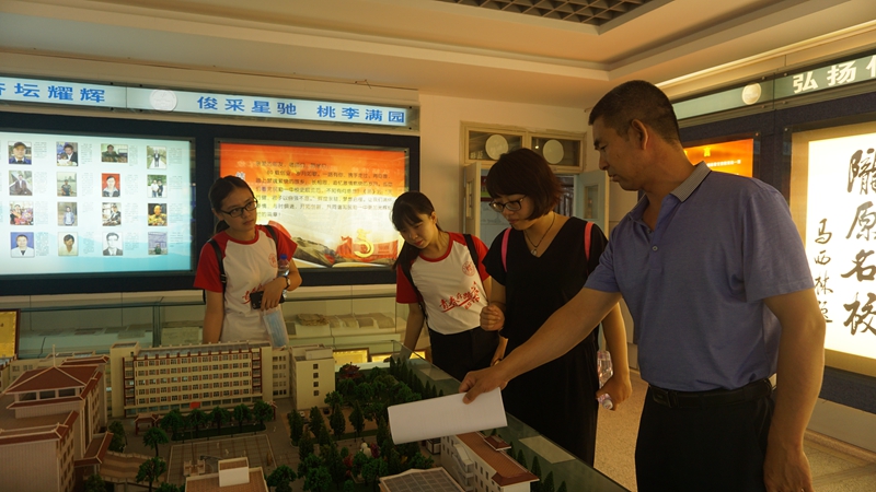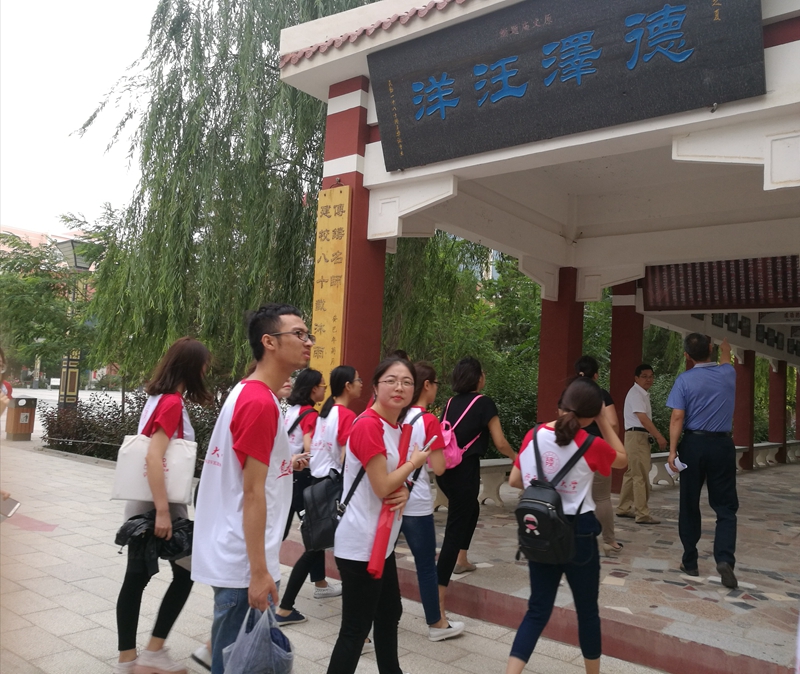 7月8日上午八点,实践团队全体成员来到了民勤县第一中学,受到了校长许少英,副校长许尔忠及教师代表的热烈欢迎。首先,副校长许尔忠,主任杨兴来带领我们参观了民勤一中的文化长廊、校史馆以及生态馆,使我们了解了民勤一中八十多年来的文化底蕴和优良学风,对民勤县恶劣的生态环境以及几十年来当地群众防沙治沙的显著成果有了深刻的认识。