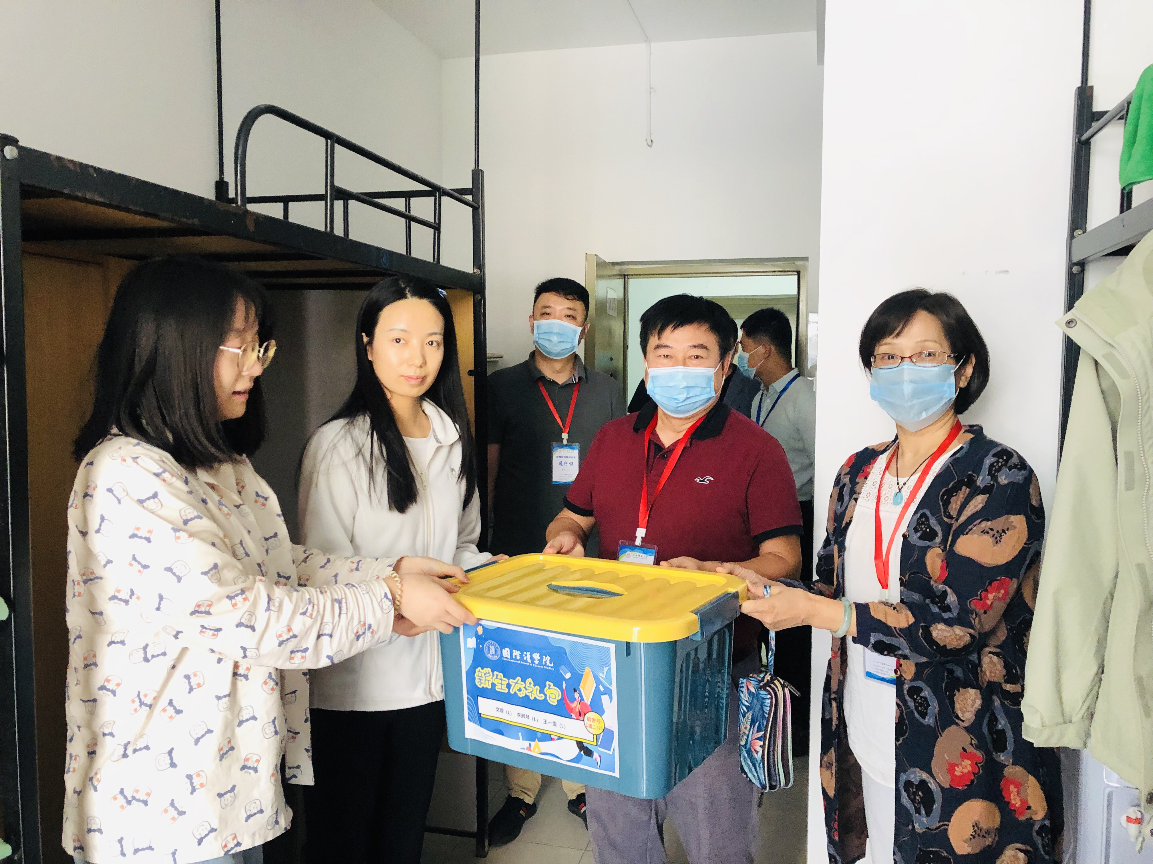 老师们依次叩响了每个寝室的门为每位新生送上了学院精心准备的新生大礼包,为新生的学业、生活、健康提供助力.