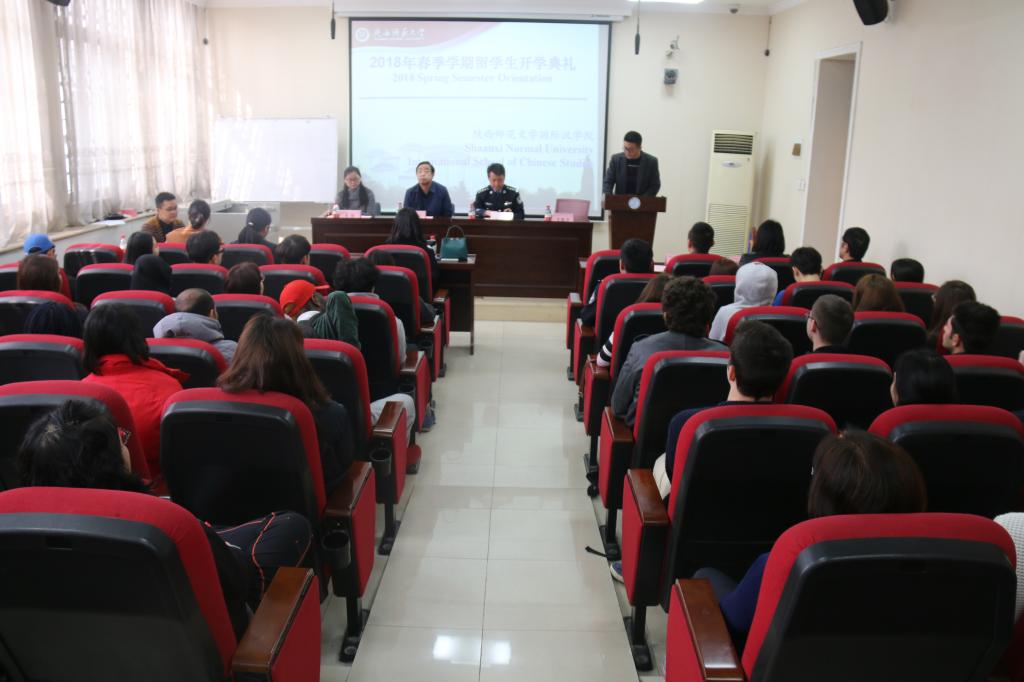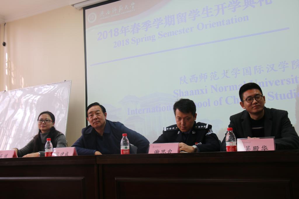 院长张建成,副院长吴媛,留学生管理办公室主任朱卫强,西安市公安局出入境管理处外管科警官谢思农、王慧,以及来自美国、澳大利亚、意大利、韩国等17个国家的80余位师生代表参加了开学典礼。典礼由52av