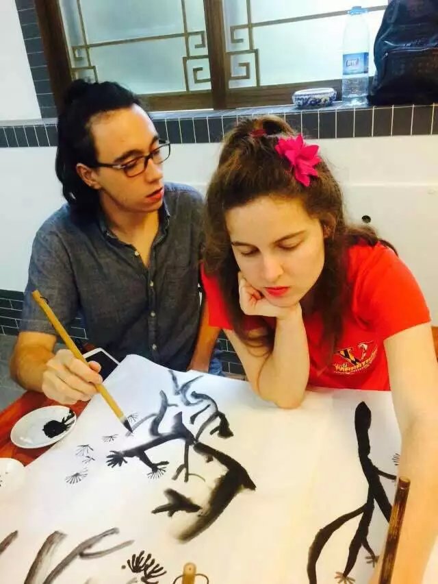 大一的新生们挑起了大梁,凭借多年练就的真本领,为美国学生教授了中国传统的国画、剪纸和中国结。面对博大精深的中国文化,美国小伙伴们跃跃欲试,学得有模有样。除了学习中国文化,中美两国小伙伴还奉上了才艺表演,中国学生们表演了笛子《茉莉花》,古筝《渔舟唱晚》还有傣族舞蹈。美国学生们表演了热情洋溢的全民健身操Zumba, 百老汇音乐剧Don’t Cry for Me, Argentina. 热爱中国文化的美国同学还用吉他弹奏了在美国很流的《对面的女孩看过来》。对中国古老茶艺颇感兴趣的美国小伙伴还教起了大家茶的种类和如何泡茶。学习及表演结束以后,大家早已打成一片,不舍得分开了!