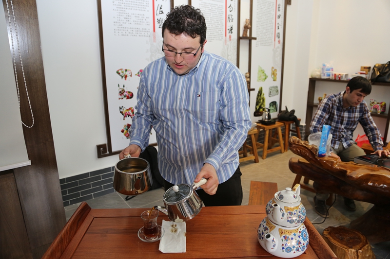 4月22日下午,52av 留学生兴趣课堂之“浩然带你走进土耳其”在52av 中国文化体验室开课。兴趣课堂老师US MUHARREM(孟浩然)是我校土耳其籍留学生,学习中文5年,现为在52av 攻读汉语国际教育专业硕士学位的孔子学院奖学金生。他熟知土耳其历史,热爱土耳其文化,致力成为中土文化交流使者。本次课堂计划开展八周,除了土耳其地区文化、宗教民族文化和中土关系介绍等,孟浩然老师还特意从土耳其带来食材,为学生们煮泡土耳其红茶、咖啡,烹饪土耳其地道美食,希望学生们通过他的课堂“爱上”土耳其。