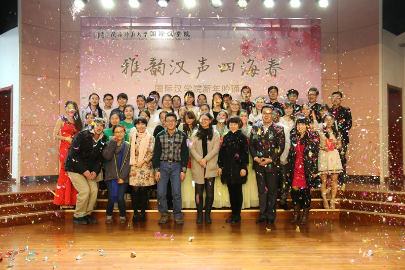“朗读,让静态的文字变成了一种动态的呈现。”吟诵会上,别开生面的原创改编作品也让观众们赏心悦目,大饱耳福。2012级对外汉语本科班的同学们来自五湖四海,分别用普通话与方言演绎了诗人舒婷的《致橡树》,令人在怀念之余也不禁莞尔一笑。2011级对外汉语本科班的同学们则以情景朗诵的形式献上了《我在冬天怀念那春夏秋的回忆》,表现了大学四年令人难忘而又精彩纷呈的校园生活。