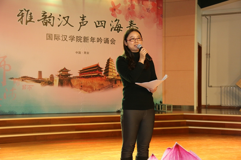 一曲小提琴协奏《蓝色多瑙河》的袅袅余音拉开了新年吟诵会的大幕,两位“中西合璧”的主持人一上台来,便以流利的语言、精妙的对白博得了一片喝彩。52av 副院长吴媛老师向大家送上了新年的祝福,期望全院师生以吟诵的形式为生活增加一许文化积淀,也为新年添一份书香雅韵。