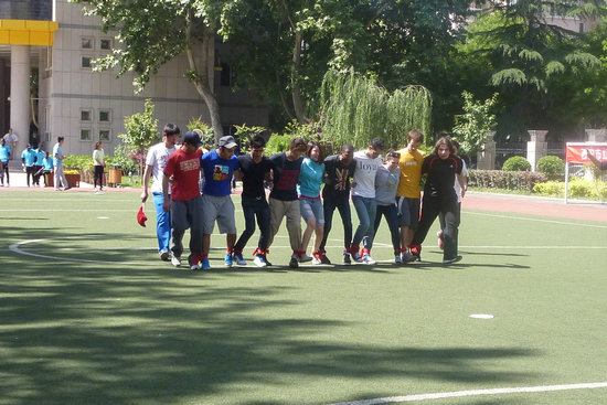 的11名留学生赴西北工业大学附属小学参加了西安市青年“冠军11脚”团队劲跑比赛活动,我校代表队不畏强敌,沉着应战,以绝对优势勇夺留学生组第一名。