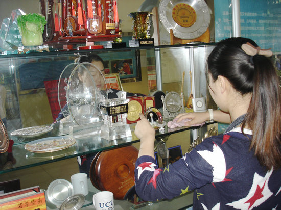10名毕业生党员用整理展柜、打扫学院公共区域卫生的形式表达了渴望回报老师、回报母校的感恩之情。 打扫卫生原本是一件很累很枯燥的活儿,但是这一群对母校充满依恋的对外汉语2008级党员们却把它演绎成为一份对母校的依依的感念,一份对老师的深深的敬意,一份对学弟学妹的浓浓的关爱:轻轻擦拭记录荣誉的照片,见证了他们的成绩;小心传递学院友好往来的礼品,充溢着自豪与欢喜;往来于熟悉的教师办公室和常常光顾的多媒体教室,除了怀念,更多的不舍。毕业生党员所到之处,都变得明亮整洁。他们用自己的实际行动向老师、学校做出了庄严承诺:在今后的生活中,会继续用自己的实际行动诠释师大人的踏实、奉献、友爱、协作。希望母校枝繁叶茂,硕果累累!
