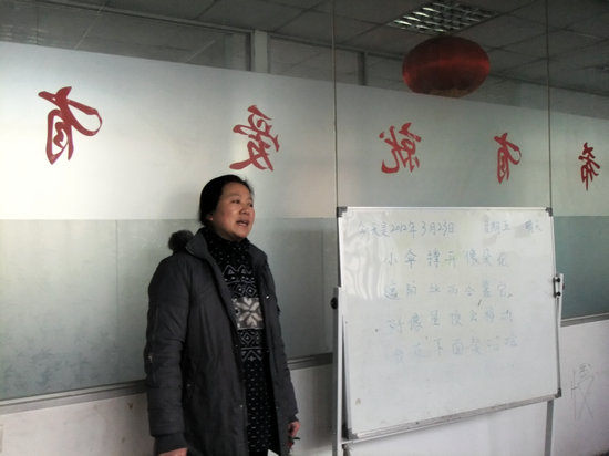 在正式跟孩子们接触之前,园长张老师向志愿者们讲述了这个特殊幼儿园的由来。作为一名患有自闭症的儿童的母亲,张老师在1999年开办了这所民办非盈利的学校,为这些特殊的儿童带来了希望的同时,她更是经历和付出了常人难以想象的艰辛与努力,不断地将爱与希望播撒到了祖国各地。园中的孩子们在张老师和其他老师耐心地呵护下慢慢获得了基本的生活自理能力。分享完后,张老师给志愿者们讲了一些与这些特殊的孩子们沟通的注意事项,志愿者们的心情无一不迫切而紧张,一部分走进了孩子们的课堂,另一部分则去给幼儿园打扫卫生。