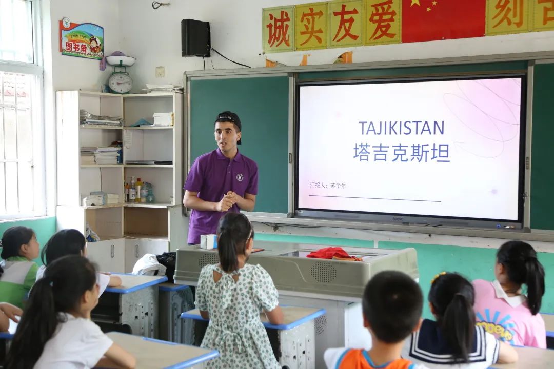 陈阮芳庆、安晨曦和苏华年三名留学生分别就越南、俄罗斯以及塔吉克斯坦的文化作了分享。外国文化激发了孩子们浓厚的兴趣,大家纷纷参与课堂互动,并就自己感兴趣的问题进行提问,现场气氛热烈,欢声笑语不断。
