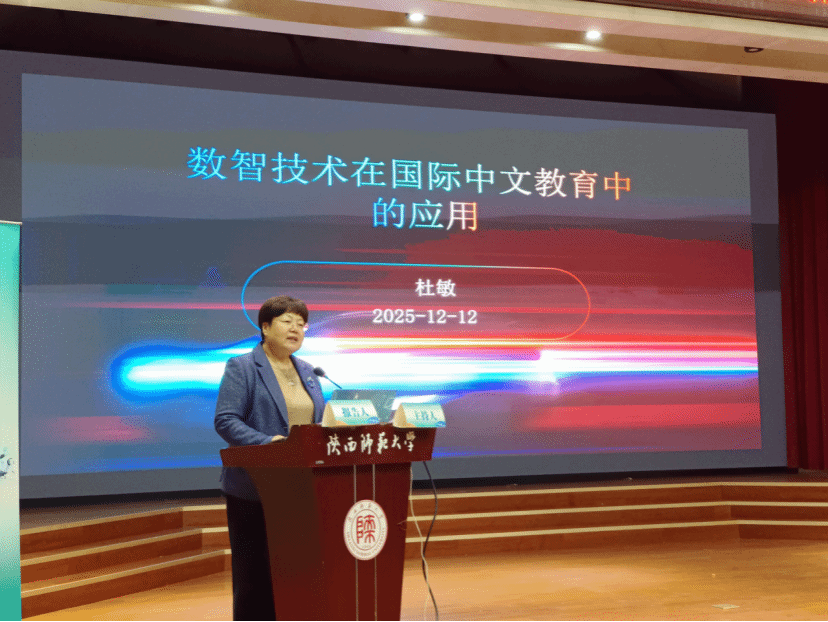 郑艳群教授以《AI赋能下中文教师数字素养提升的路径与意义》为题进行报告,基于《国际中文教师数字素养参考框架(2025)》,探讨 AI 赋能下数字素养提升的主要路径,包括技术理解、多模态资源应用、智能教学设计、学习数据分析与基于证据的教学改进。郑教授强调,AI不仅可以改变教学工具,更将重塑中文教师在语言理解、跨文化沟通和技术伦理中的专业角色。