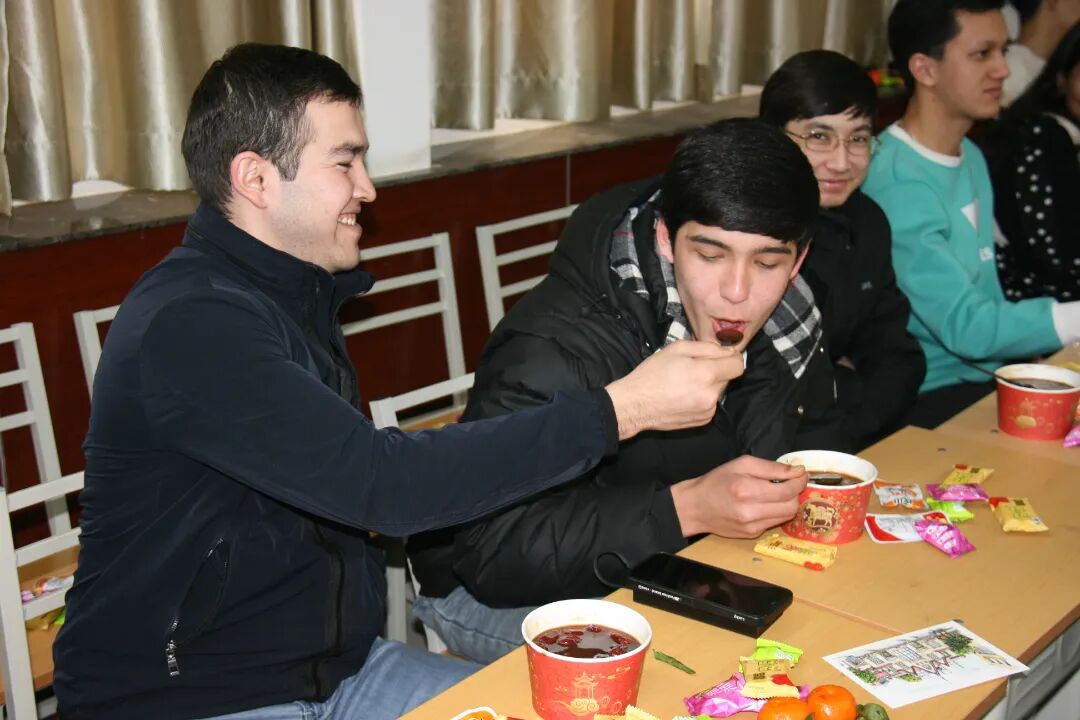 茶话会在吉尔吉斯斯坦留学生王新宇与土库曼斯坦留学生谭美珍的双语主持下拉开序幕。两位主持人热情洋溢的开场词瞬间点燃现场气氛,他们代表全体学子感谢学院的暖心安排,让大家在异国他乡感受到家的温暖。