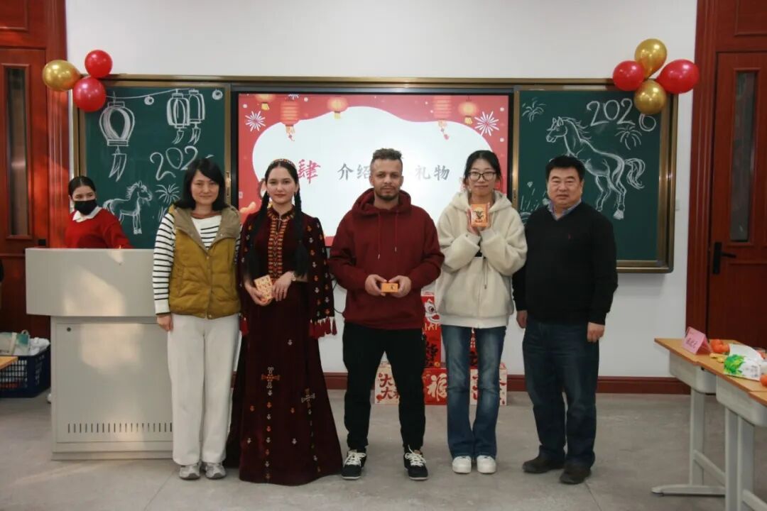新春慰问茶话会在雁塔校区教学二楼2102教室温馨举行。学院院长石洛祥、党总支书记李小玲、党总支副书记王钰、副院长贾泽林、副院长孙建伟与来自多个国家的留学生及中国学生代表欢聚一堂,共迎新春佳节。