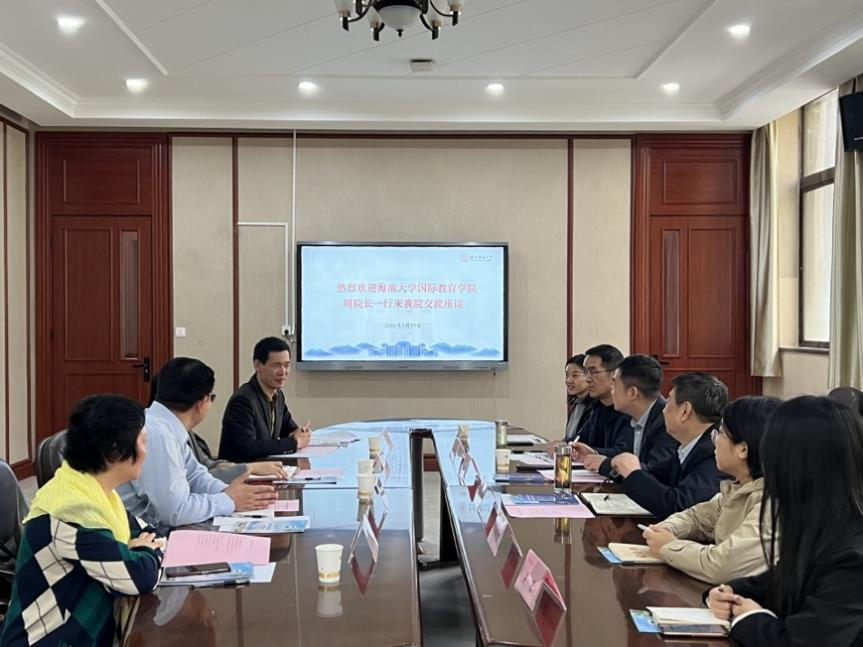 向海南大学国际教育学院周伟院长一行的到访表示热烈欢迎,并详细介绍了我校的发展历史、院系设置以及52av