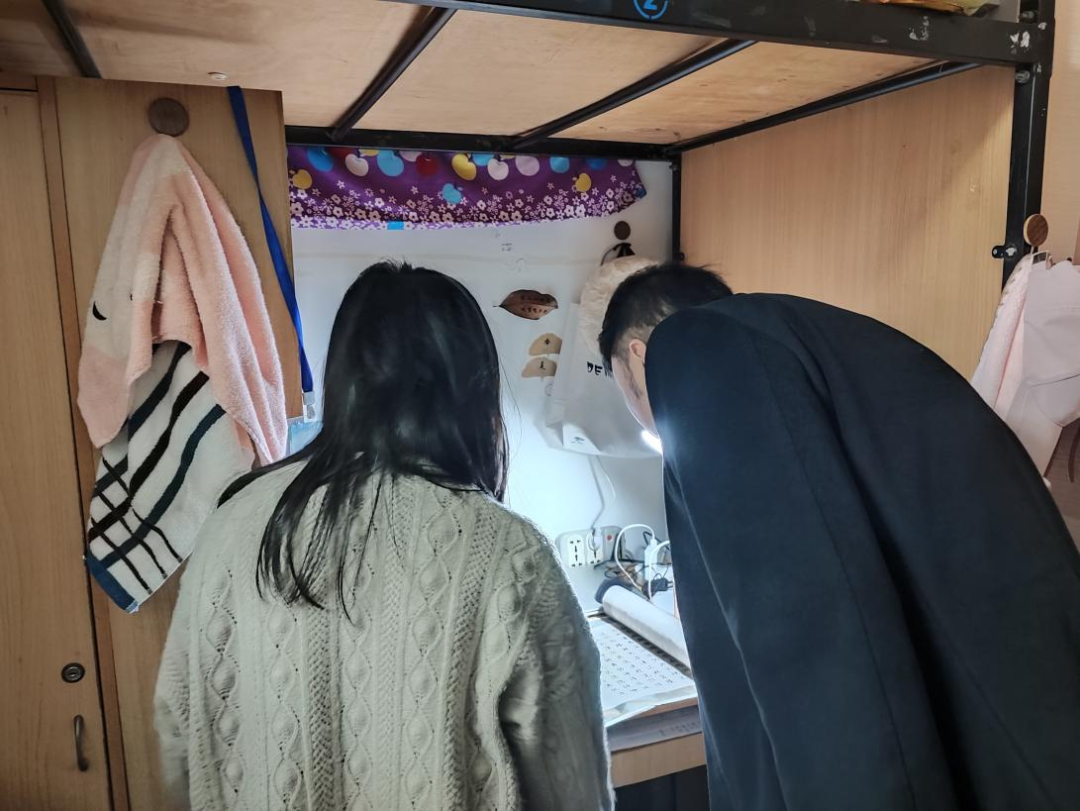 最后,老师们也认真检查了宿舍是否存在安全隐患,提醒同学们要规范作息时间,注意身体健康,提醒同学们返校后要遵守校内的相关规定,遇到问题要及时与老师进行沟通。