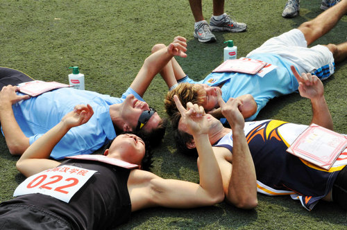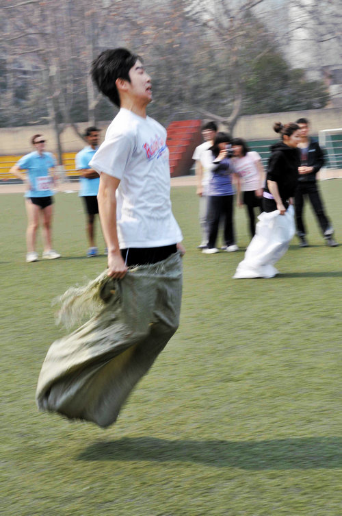 本次运动会共设有个人项目16项,团体项目3项,分别由08级对外班和研究生会负责运动会的协调保障服务。尤其是男女子短跑项目,由于留学生参与度高,看点频现,赛场内外吸引了不少中国学生为他们鼓劲加油。在轻松的氛围中,大家都体会到了运动的快乐,释放出自己的激情。个人赛之后的团体协作项目笑声迭起,师生们在协作比赛的过程中彼此增进了解,加深感情,娱乐至上,活力无限。