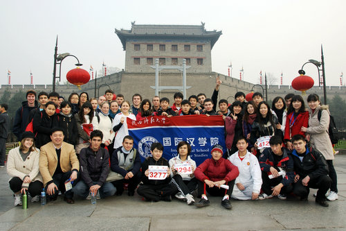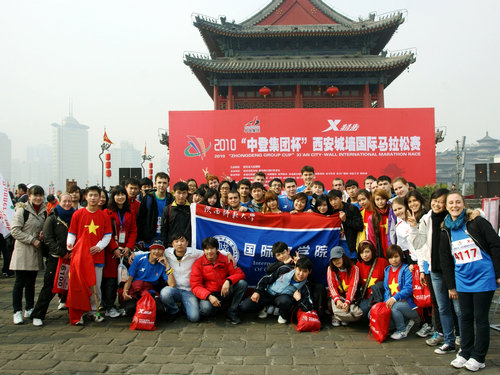 组织近50名留学生参加了2010年西安国际城墙马拉松赛。该项比赛是全国体育旅游金牌项目和陕西省十大魅力节庆活动之一,从1993至今已成功举办了15届。