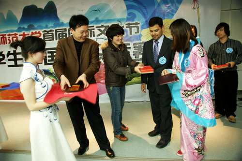 迈向国际化道路的重要举措,留学生的中国文化知识竞赛更是一种把中国文化向外推广的有益举动。他向通过初赛进入决赛的选手表示衷心祝贺,并预祝本次活动圆满成功!