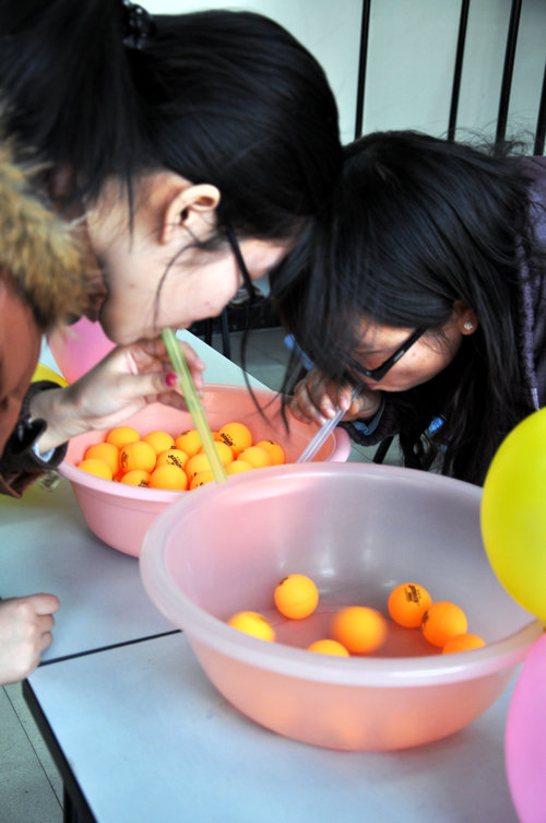吸乒乓球游戏现场
