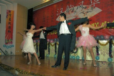 2007级对外汉语专业带来的《shining kiss》拉开了新年联欢会的序幕。活力青春、古灵精怪的动感舞姿,瞬时吸引了全场观众的目光。颇具创意的歌舞剧《罗密欧与林黛玉的爱情奏鸣曲》,既跨越了历史时空,又拉近了中西文化的距离。妙语连珠的相声,极具风雅的古诗文配乐朗诵、中外硕士研究生用歌舞演绎的《中国话》以及有“钢琴王子”之称的韩国留学生郑荣光、李起京带来的钢琴伴唱,为晚会增色不少!