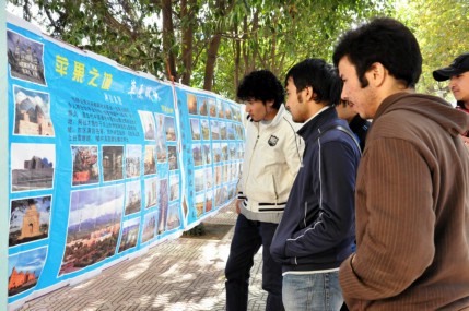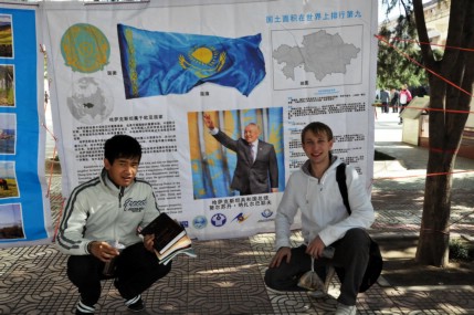 由于寒流的侵袭,近几天古城西安的天气骤然转凉。即便如此,展现哈萨克斯坦幽美的锡尔河谷风光,古老的伊斯兰建筑,繁荣的城市建设,蓬勃发展的科学技术的图片还是吸引了众多中外学生前来观赏。图片中天山上的皑皑白雪与阿拉木图城内鳞次栉比的高层建筑在正午的阳光下相映生辉。有的哈萨克斯坦同学还在图展中央合影留念。