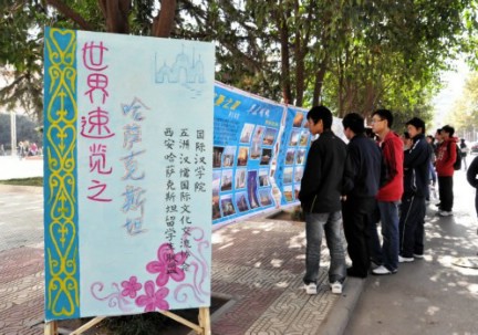 五洲汉儒国际文化交流协会于11月2日在雁塔校区音乐喷泉西侧联合举办了“哈萨克斯坦图片展”。图展共分为五个主题,以哈萨克斯坦的国旗为中心,左侧展出哈萨克斯坦的自然风光与城市景象,右侧则展示科技成果和体育腾飞。