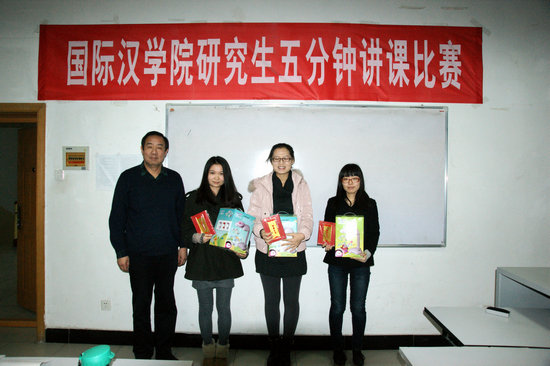 比赛评出一等奖3名、二等奖5名以及三等奖7名。汉语国际教育硕士专业的高一平、游婧悦及董婧同学获得了一等奖,李晓娇、呼启华、郭亚会等5位同学获得二等奖,周丹、马娜丽沙以及应用语言学专业的刘洋等7位同学获得了三等奖。