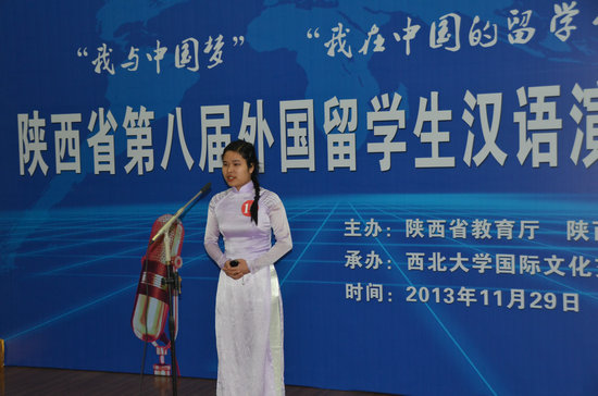 本届汉语演讲比赛以“我与中国梦”和“我在中国的留学生活”为主题,其稿件均为选手的原创作品。参赛选手们准备充分,声情并茂,观点独特,以外国人的视角观察和解读中国的风土人情和社会发展。我校黄熙秀同学以《我的留学生活》为题,凭借其流利而富有感染力的汉语讲述了她来中国后喜欢上中国菜并学做菜的过程和感受;哈萨克斯坦东干学生刘帆以《我的中国梦》为题,用饱满、真挚的情感,流畅的语言表达了其深植于内心的对西安这片故土的感情;英国学生蓝天则以《我一定要成功》为题,讲述了他自己对成功的独特理解:即到中国学汉语,感受中国文化。整场比赛既是选手汉语学习水平的展示,也是思想观点的碰撞。