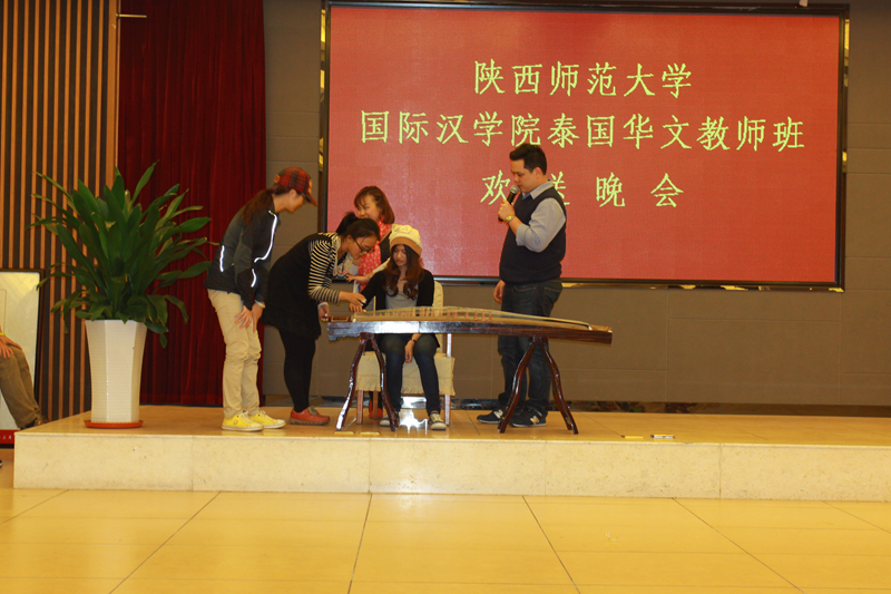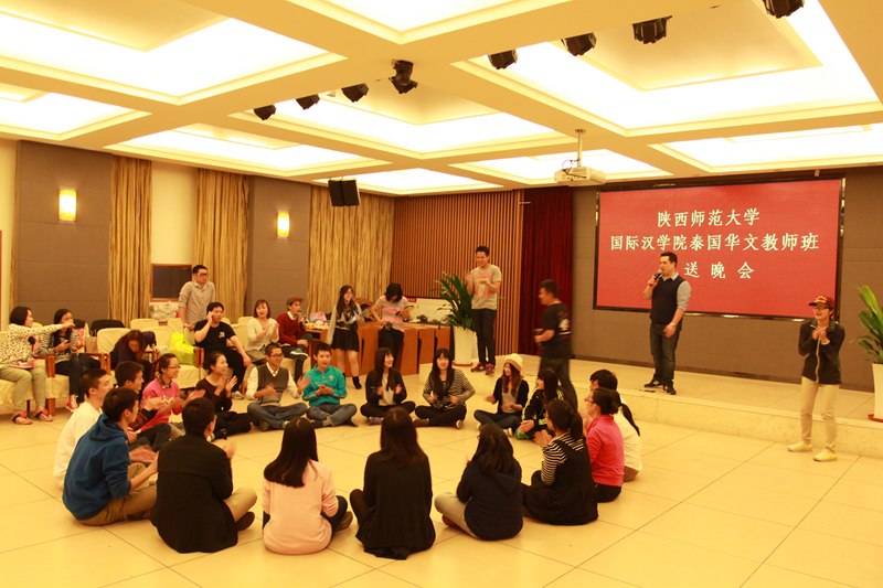 有关老师及学生志愿者在启夏苑报告厅举行了欢送晚会。学生们用一个个精彩的节目和游戏为此次学习班划上了一个完美的句号。晚会上的节目精彩纷呈,有中国传统乐器古筝葫芦丝表演,具有民族风情的新疆舞蹈,以及泰国传统舞蹈。晚会气氛热闹轻松,期间,师生们还互赠了礼物表达感谢与祝福。