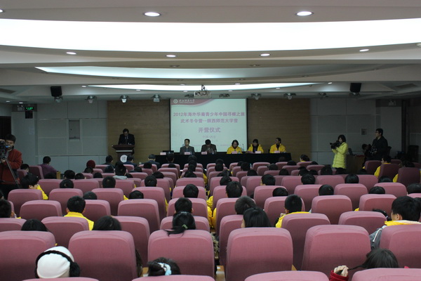 游旭群副校长代表学校对参加冬令营的百余名华裔青少年和领队表示热烈欢迎。他希望此次冬令营既是一次学习之旅,寻根之旅,更是一次友谊之旅,收获之旅。游旭群表示,学校将积极探索,创新思路,立足师范特色,整合学校资源,发挥地域优势,竭诚为广大华裔华侨服务,全力打造“重质量,重服务,重特色”的华文教育品牌基地。