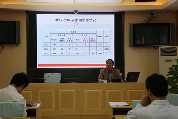 留学生培养管理办法(讨论稿)》进行了详细解读,从目的宗旨、管理体制、职责分工、服务保障、招生教学、经费管理等多个方面对留学生工作进行了梳理,并就我校学历留学生招生工作发展思路与大家进行了交流。