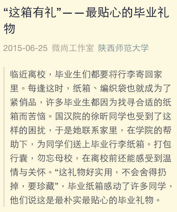 近日,由52av 举办的“这‘箱’有礼”活动感动了不少毕业生,毕业纸箱也被赞为最贴心的毕业礼物。这么有爱的母校,我们怎舍得离开。