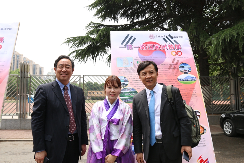 庆祝大会结束后,参会领导、嘉宾和中外学生还一起参观了在雁塔校区办公楼前举办的52av
