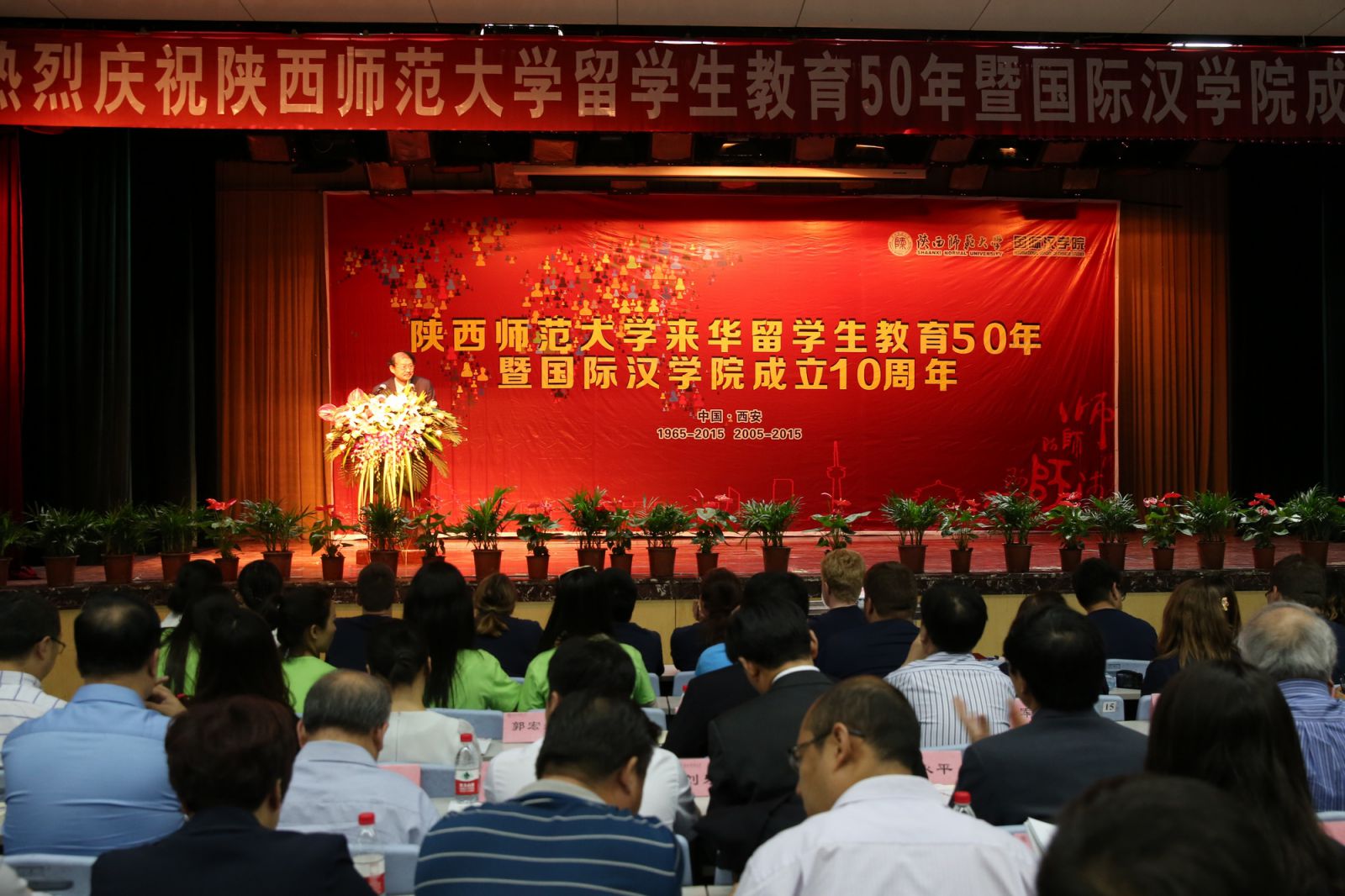 成立10周年庆典大会在雁塔校区积学堂隆重举行。教育部国际司办公室主任郭军,陕西省政府外事(侨务)办公室副巡视员阚开沛、侨政处科长杜红君,陕西省教育厅国际处副处长郭宏毅,大韩民国驻西安总领事馆、哈萨克斯坦东干协会、哈萨克斯坦国际一体化基金会、美国全球教育联盟驻西安代表处、新加坡南阳理工大学陕西校友会、陕西明珠国际集团等友好机构负责人,西北工业大学、西北大学、西安电子科技大学、长安大学、西安石油大学、咸阳师范学院等兄弟院校国际学院领导,周质平、孙朝奋、朱永平、刘乐宁等来自美国普林斯顿大学、斯坦福大学、圣母大学和哥伦比亚大学的知名学者,52av