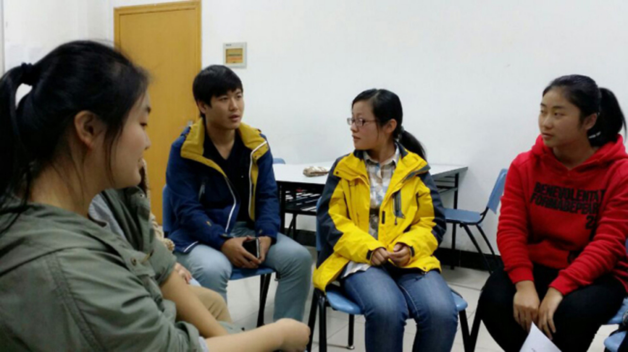 10月21日下午在社长陈舒萍的带领下,新成员的纳新面试分成了两个批次。第一批采用传统的问答形式。第二批面试采用分组合作形式:将新生分为四个小组,每个小组在10分钟的时间内完成对一项主题活动的策划构思,然后用三分钟的时间向部长们作出阐释。部长仔细观察每个组员在讨论构思过程中的发言和表现并记录。面试整体风格活泼中不失严肃,避免了新生的紧张,有利于准确全面地了解新生的素质和能力。面试过程中更有留学生前来助阵,为面试国际部的新生创设与外国人交流的情景。