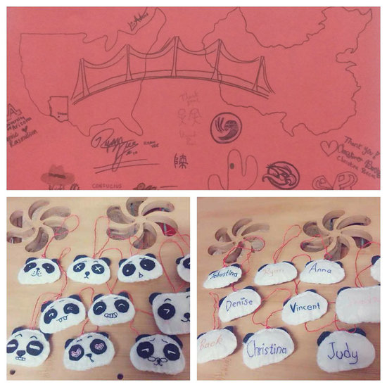 夏令营师生在欢送晚宴向我校赠送亲手绘制的中美友谊画