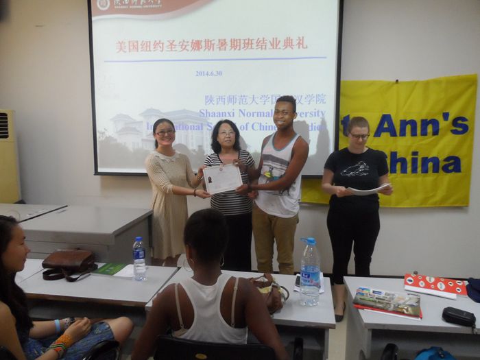 7月2日,来自美国纽约圣安娜斯学校的23名高中生在经历了为期17天的中国传统文化学习之后顺利结业。52av 副院长吴媛为同学们颁发结业证书,并希望他们回到美国之后可以继续汉语学习,为中美两国的友谊做好使者。