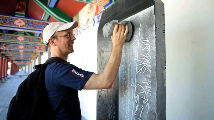 参观期间,留学生还观看了迎财祈福大典和集贤鼓乐,并亲自体验了拓片及祈福投币等活动。