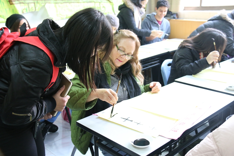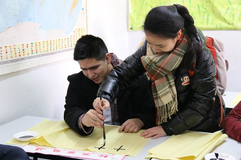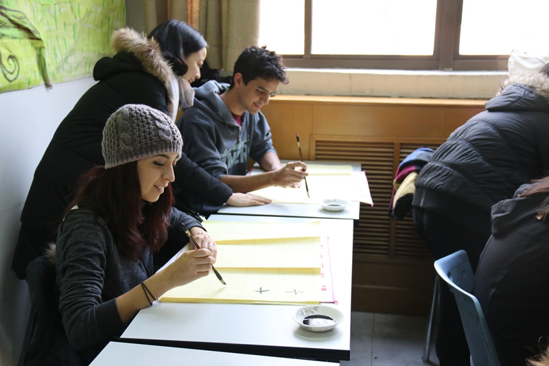 首先,来访师生与52av 留学生管理办公室相关工作人员进行了简单交流和互动,介绍了双方的学校概况和项目内容。会后52av 为来访师生安排了历史文化讲座及中国书法体验活动。在中国学生的陪同下,美方师生体验了博大精神的中华文化和汉字魅力。