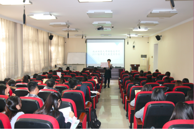 会议在吴殿华副书记与同学们亲切的互动中拉开了帷幕,他以“双十一”为喻,告诫毕业生即使是这场网络购物狂欢,也需要清醒头脑,理清思路,明确目标,提前放好购物车,调好网速,提前调整作息,才可以在关键时刻一击得手,满载而归。就业创业亦是如此,也需仔细规划,做好完全准备,方能百战不殆。随后他对毕业形势、政策和技巧进行解读,并从就业形势、硕士毕业生平均工资水平、就业意向等多个方面进行了分析点评。吴书记深入浅出的分析中,言语风趣而不失内涵,幽默而不失睿智。
