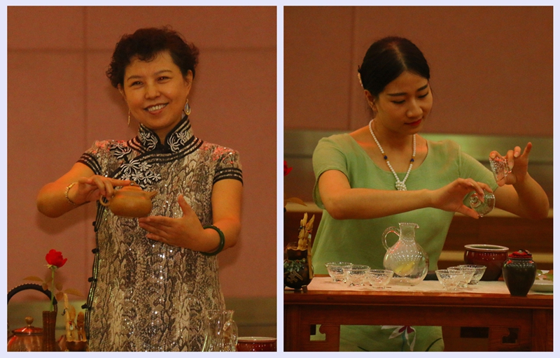 在紧张的学习生活之余,学员们还以班级为单位精心排练了文艺节目,并在结业典礼的舞台上为大家精彩呈现。诗朗诵《祖国》、大合唱《南泥湾》、话剧《西安行》与《西去东来》、清唱《秦味儿》等,既饱含了学员们对祖国的思念与祝福、对陕西文化的喜爱,也满怀着对祖国国务院侨办的感谢以及对陕西师大依依不舍之情。高级茶艺师、西安海之音茶文化传播公司董事长戚海音还亲临现场,为海外华文教师们献上了精彩的茶艺表演,让学员们对茶艺文化的博大精深为之震撼。