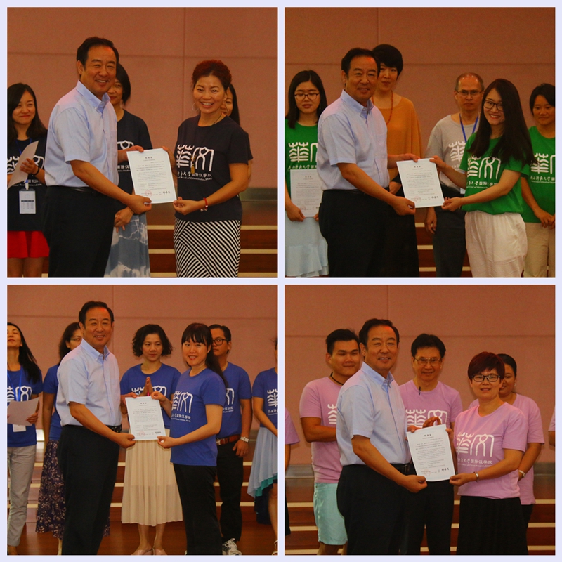 院长张建成最后在讲话中说,要感谢国务院侨办为大家提供了这样一个学习和交流的平台,希望参加培训的各位老师通过此次培训,增加自信,增长动力,在海外把中国文化讲得更加生动,把中国文字讲得更加清晰,让更多的人了解中国,成为新时期华文教育的重要开拓者和优秀中华文化走向世界的重要传播者。