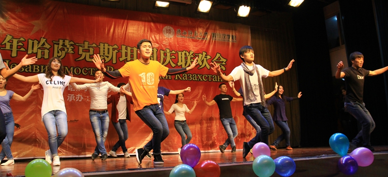 院长张建成,俄语系主任孟霞,历史学院教授王国杰及我校和兄弟院校的近300名哈萨克斯坦及中亚地区留学生欢聚一堂,共话友谊,展望丝绸之路新辉煌。