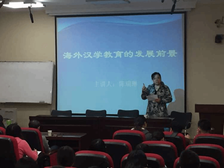 陈瑞琳老师认为,“中国传统文化”是一个复杂过程的产物,具有强大的包容性,因此成为唯一一个延续了五千年的文明。她指出文化的传播不仅要靠“语言载体”,还要靠“文学载体”。并就此谈到了中西方文化发展进程的异同,指出中国以后的道路应该“告别革命,走从良之路。”她从作家视角谈论了海外的华文创作现状,介绍了多位知名作家,诸如陈河、查建英等,指出在海外的华人文坛上,并不缺少优秀的作品,华文作品正在“冲破国界,冲向世界。”,并预言“华文文坛将是一个最大的文坛”。陈瑞琳老师还格外强调了东西方文化冲突,比较了中西方教育的巨大差别以及中国应试教育的不足,并对国汉院即将走出校门成为教师的同学们表达了美好期冀。