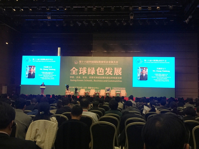 “中国国际教育年会”是在教育部指导与支持下由中国教育国际交流协会主办的中外教育界年度盛会,作为中国最具影响力的国际教育交流平台之一,至今已成功举办十五届。本次年会主题为“全球绿色发展:学校、企业、社会,实现可持续发展的路径和制度创新”,分设22个国际论坛与研讨专题,涉及国际学生流动、留学生政府资助、教育质量保障、中外合作办学等多个方面,教育界精英、中外院校高层及专家学者共聚一堂,现场进行高峰对话,共同探讨教育发展问题。