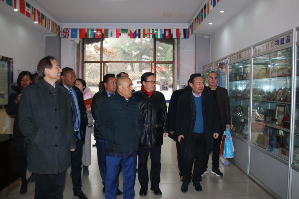 中华文化体验室、留学生阅览室、唐风汉语教室等特色教室,并合影留念。