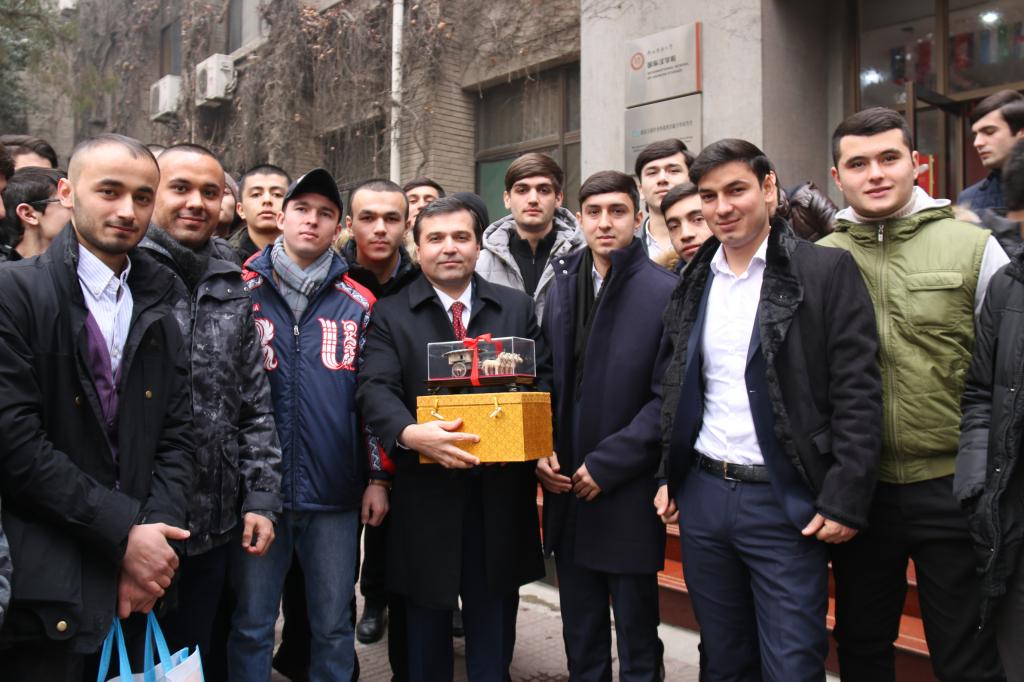 随后帕尔维兹.达夫拉特佐达大使先生发表讲话,首先感谢张院长及学院为塔吉克斯坦留学生们的关心和照顾。他指出,积极参与到一带一路建设中的塔吉克斯坦当前正处于国家经济腾飞阶段,近些年来塔吉克斯坦共和国的GDP稳定保持在7%左右增长。塔吉克斯坦自1992年与中国建交以来,两国关系积极、健康、稳步向前发展,塔中两国不仅互为友好邻邦,也是重要的战略合作伙伴,塔中两国在政治、经济、文化等领域都有广泛合作。就教育领域而言,来华留学的塔吉克斯坦籍学生已由最初的50余人发展至当前的3300余人,来华留学已经成为塔吉克斯坦学生的优先选择方向之一。大使先生同时强调,国家的发展、两国的友谊不仅依靠两国元首及政府之间的努力,更重要的是在于两国民众之间的相互交流、学习、融通,尤其是青年学生之间开展的文化交流活动。希望在华学习的塔吉克斯坦留学生们珍惜宝贵机会,把握青春,规划人生,利用好学校、学院提供的各项有利条件,刻苦学习中国文化和知识,努力提升专业技能,并能积极参与到国际学生联合会中,在锻炼自我的同时积极展示塔吉克斯坦的国家形象,努力使自己成为国家建设的有用人才,积极推动两国关系向更深层次发展。大使先生殷切叮嘱在座所有要入乡随俗,遵守中国的法律法规和学校的各项规章制度,努力学习的同时要照顾好身体,多与家人联系。参加座谈会的塔吉克斯坦留学生们就开展学生文体活动等问题与大使先生做交流,座谈会在欢乐的氛围中结束。会后,张华院长与达夫拉特佐达·帕尔维兹大使先生互换礼物并合影留念。