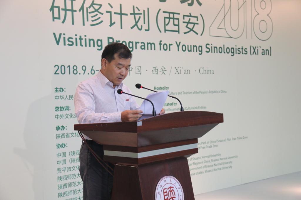 陕西省文化厅厅长任宗哲从陕西独特而悠久的历史文化背景出发,介绍了西安作为“一带一路”倡议起点城市的发展成就。随着习近平主席“一带一路”倡议的提出,作为古丝绸之路起点的西安,从中国的内陆腹地城市,一跃成为中国对外开放的前沿,希望通过在西安的研修,各位青年汉学家可以更加深入地了解“一带一路”倡议,提升汉学研究水平。此次研修班也被纳入了“第五届丝绸之路国际艺术节”框架中,希望各位汉学家通过艺术节的各项活动,感受古今丝路的文化魅力。