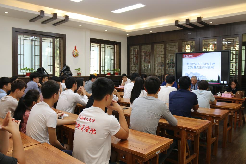 张建成院长对安胡塞主席一行到访学院表示热烈欢迎。他向在场师生介绍说,安主席作为地地道道的陕西乡党,近年来为促进中哈两国高层互访、经济贸易往来、文化教育交流等方面合作做出了卓越的贡献,已促成千余名东干族学生到中国学习,为多个中国企业赴中亚地区发展牵线搭桥。张院长勉励在座学生,要珍惜今日这来之不易的学习机会,把握“一带一路”倡议带动下中国与中亚地区多方面合作日益紧密的大好时机,时刻铭记自己作为东干族学生肩负的文化使者的责任与使命,在校期间努力学习成材,不辜负时代、不辜负远在中亚的家人朋友对他们的期许和厚望。