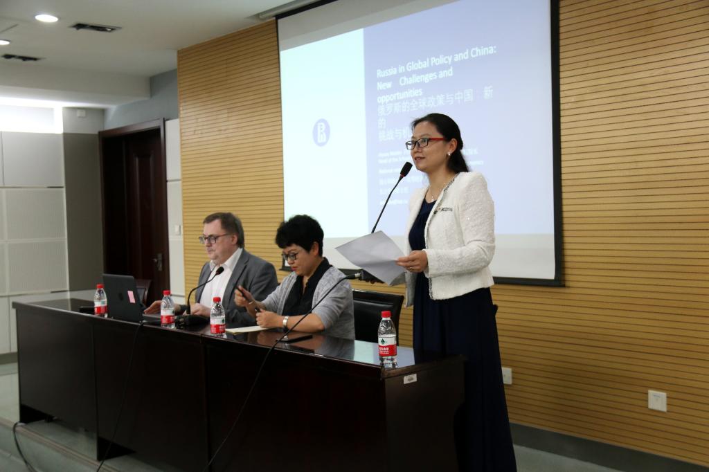 副院长吴媛,俄语中心中方主任孟霞、俄方主任娜塔莉·察廖娃聆听了讲座。马斯洛夫教授从经济学、国际关系学角度分析了亚洲局势和亚洲各国关系、俄罗斯转型面临的问题及俄中关系未来走势,并就学生们提出的有关克什米尔和叙利亚问题分享了自己的观点和看法。